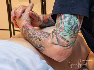 Encore une équipe de choc ce matin. Le commando bien-être pouvait frapper. Pour leur présence et leurs énergies, un gros merci à Sheila et à ses mains magiques, à Christophe, seul agent immobilier-masso que je connaisse, à Gérald l'omniprésent, à Jérôme sorcier shiatsu diplômé de Poudlar, pour tout le bien-être qu'ils ont dispensé.